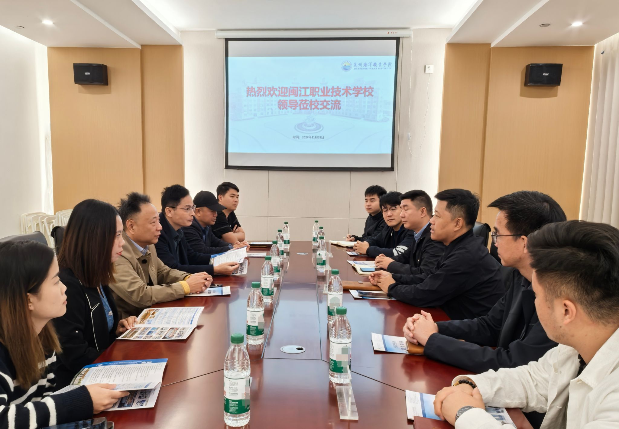 座谈会上,栾副校长对闽江职业技术学校的到来表示诚挚欢迎,并介绍了我校的教学设施、师资配备等办学情况及办学优势,详细阐述了招生情况与长远的发展规划。并表示学校高度重视与生源校的沟通交流,充分认识生源校对学校长久发展的重要作用,要进一步跟闽江职业技术学校加强互动交流,协同培育优质生源。闽江职业技术学校常务校长郭霖及执行校长叶友山充分肯定了我校的办学水平与生源质量,对校园环境、校园设施给予高度评价,将会与师生共同分享泉海的优越办学条件及优秀成果,并对两校携手推进教育事业充满信心。会上,相关领导展开教育教学质量、学生管理、学生安全等方面的经验交流。