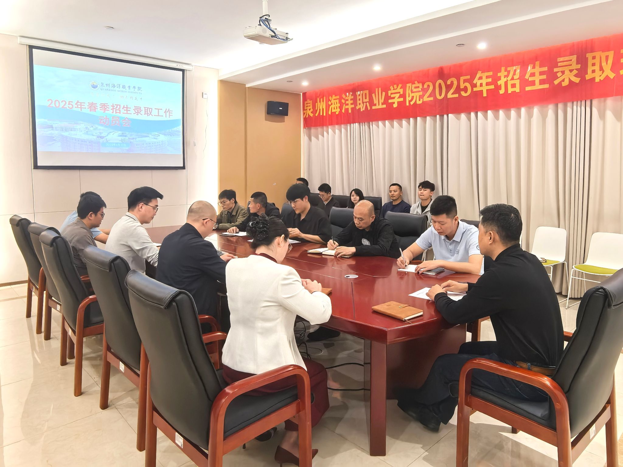 会上,栾璋宝副校长就2025年泉州海洋职业学院春季招生录取工作方案进行解读,对各相关小组人员职责安排、我校今年春季录取工作中的纪律要求做出详细说明。他强调,学校高度重视春季招生录取工作,已成立录取工作领导小组,负责指导录取工作全流程,并要求各工作组将责任落实到个人,严格实施“阳光工程”。