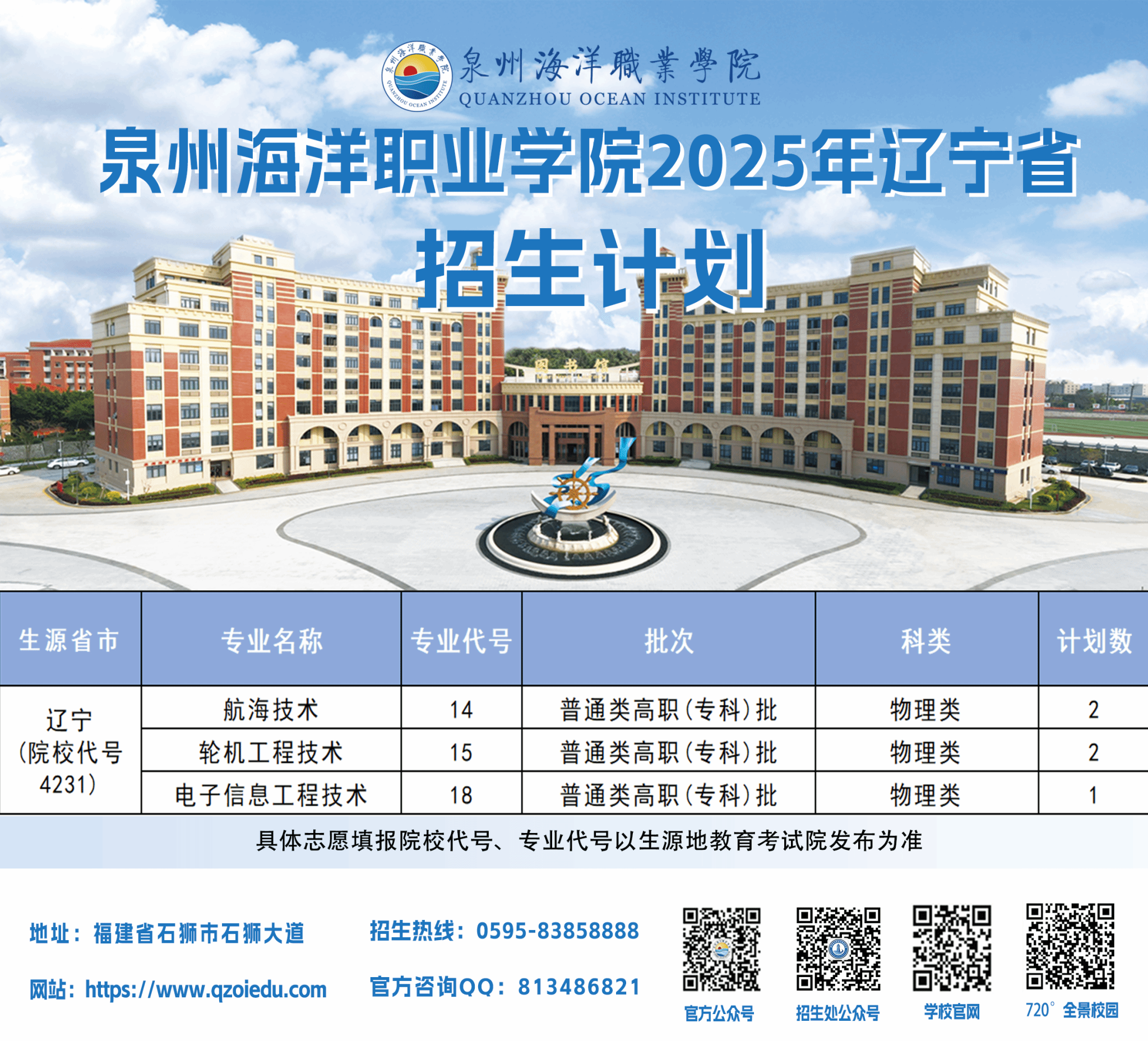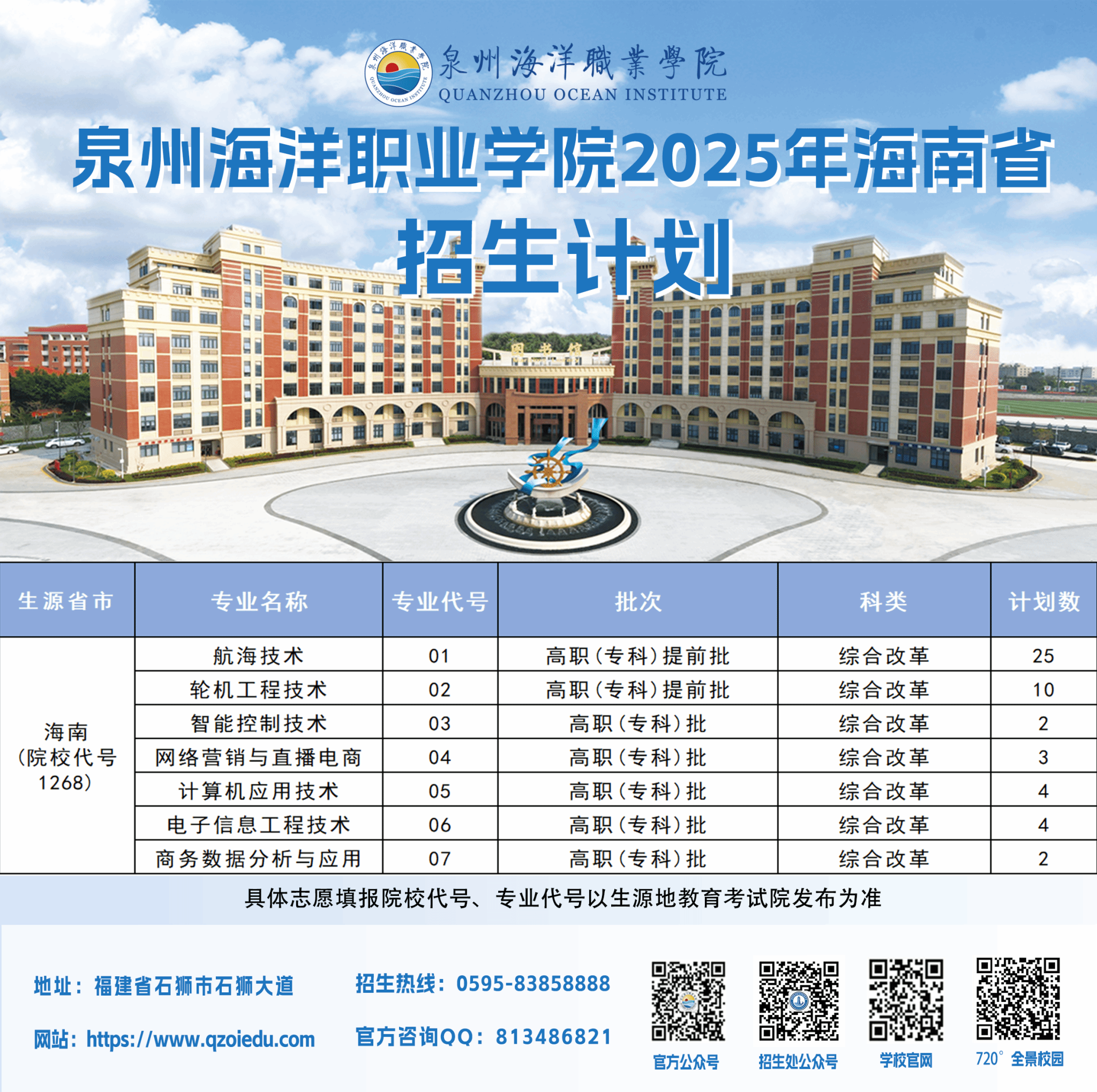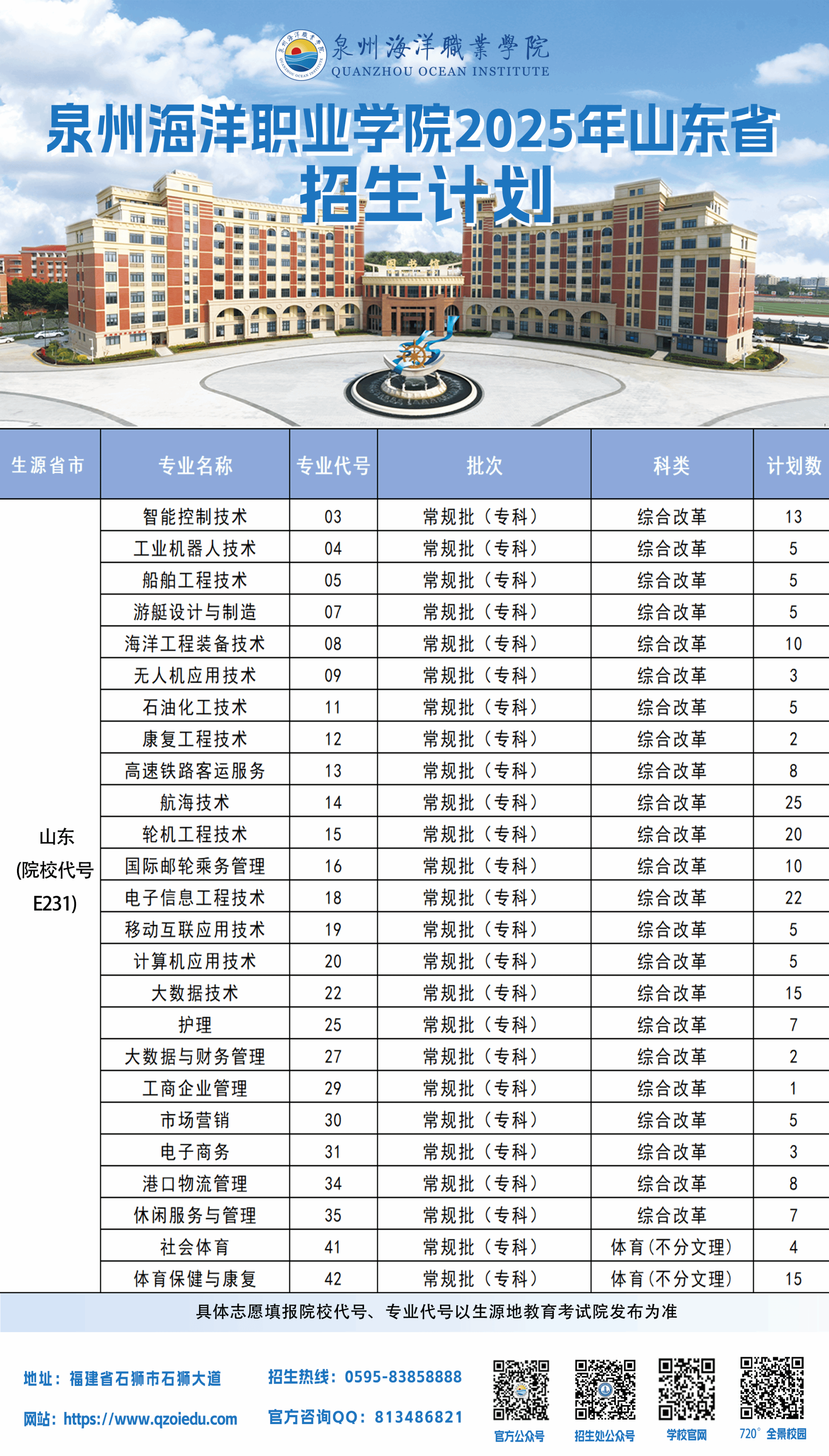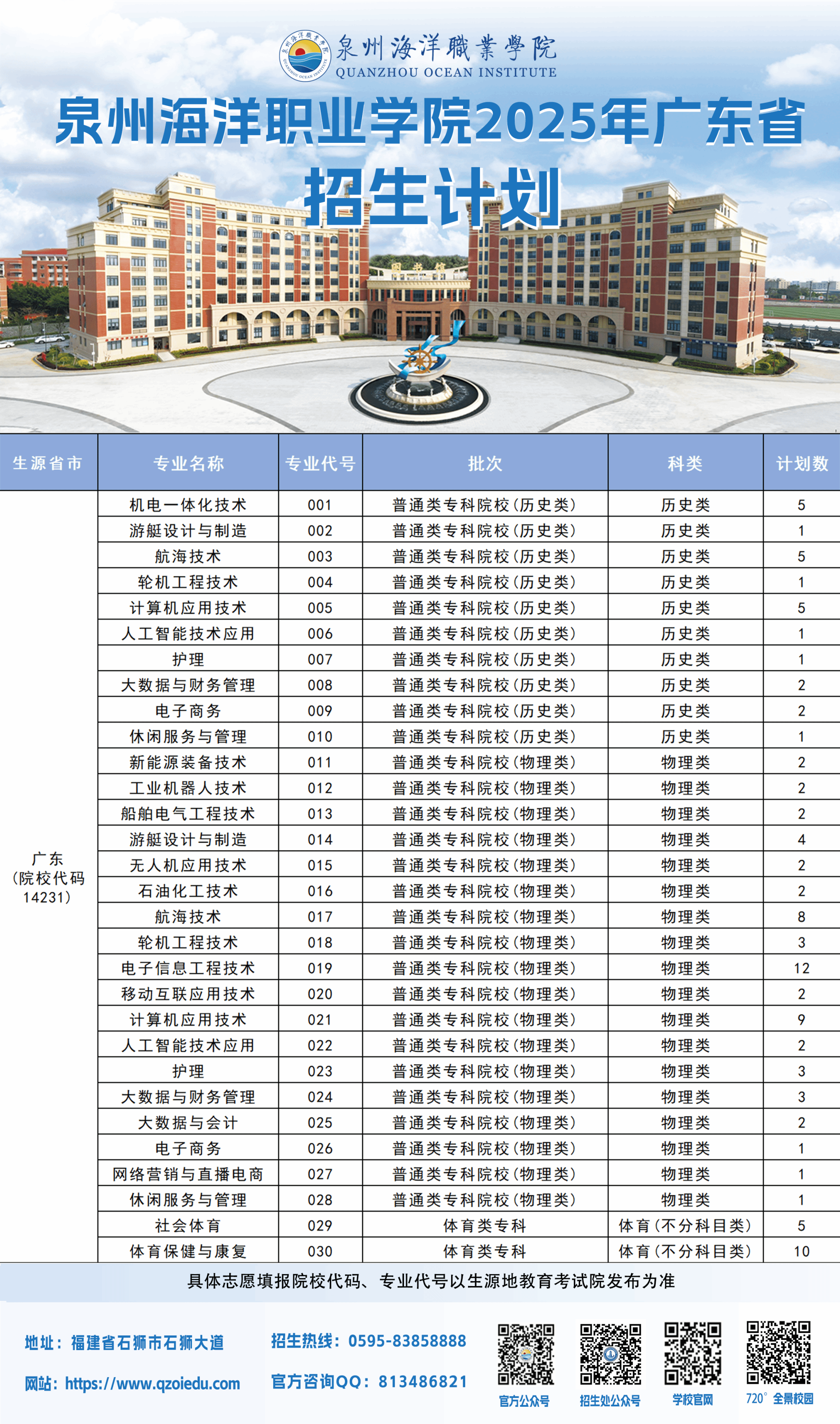 泉州海洋职业学院2025年普通高考招生计划