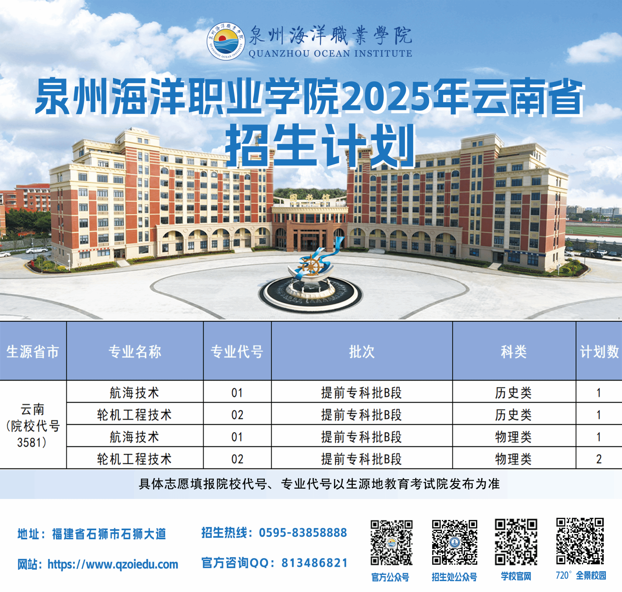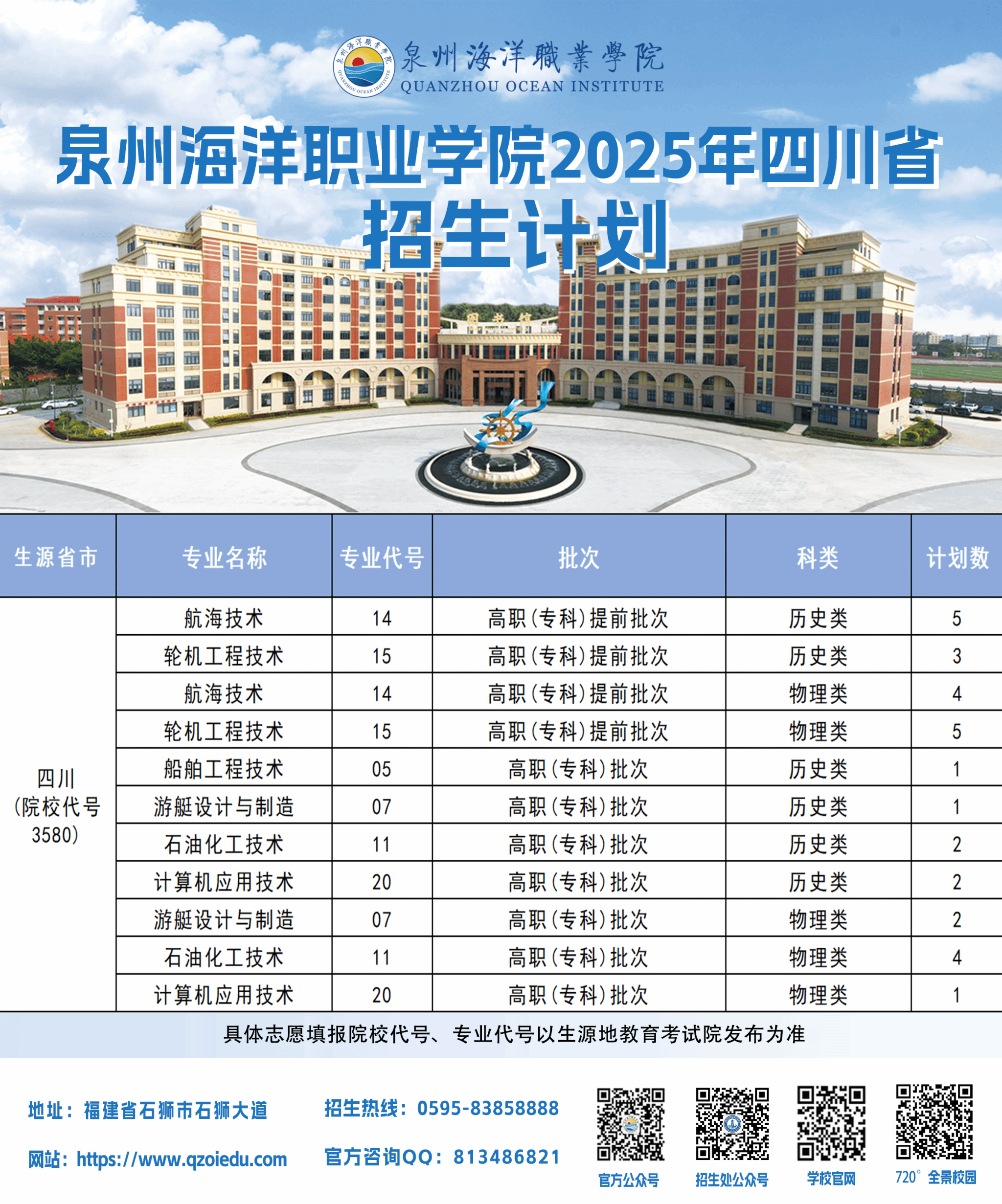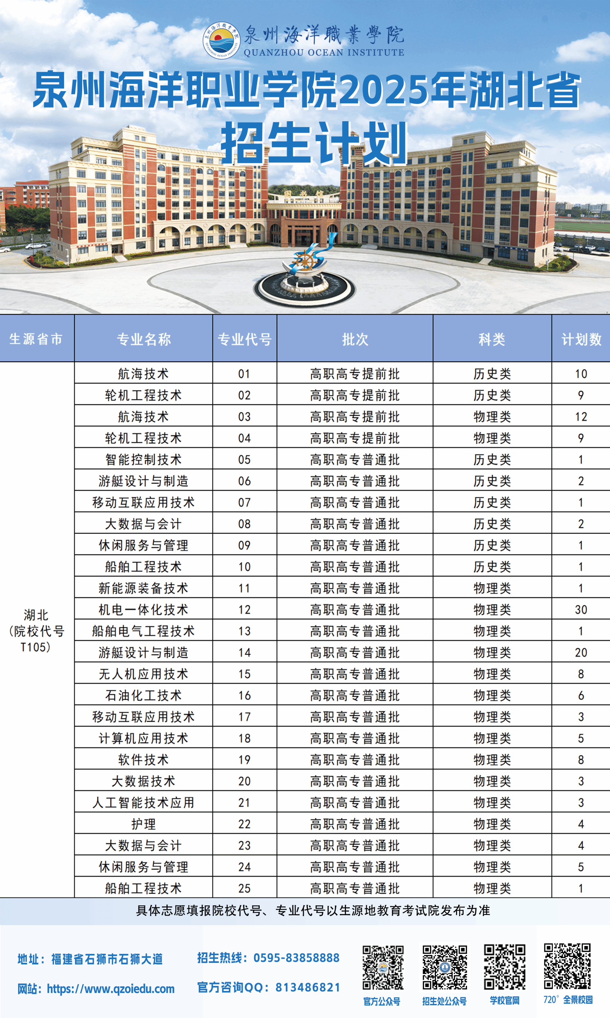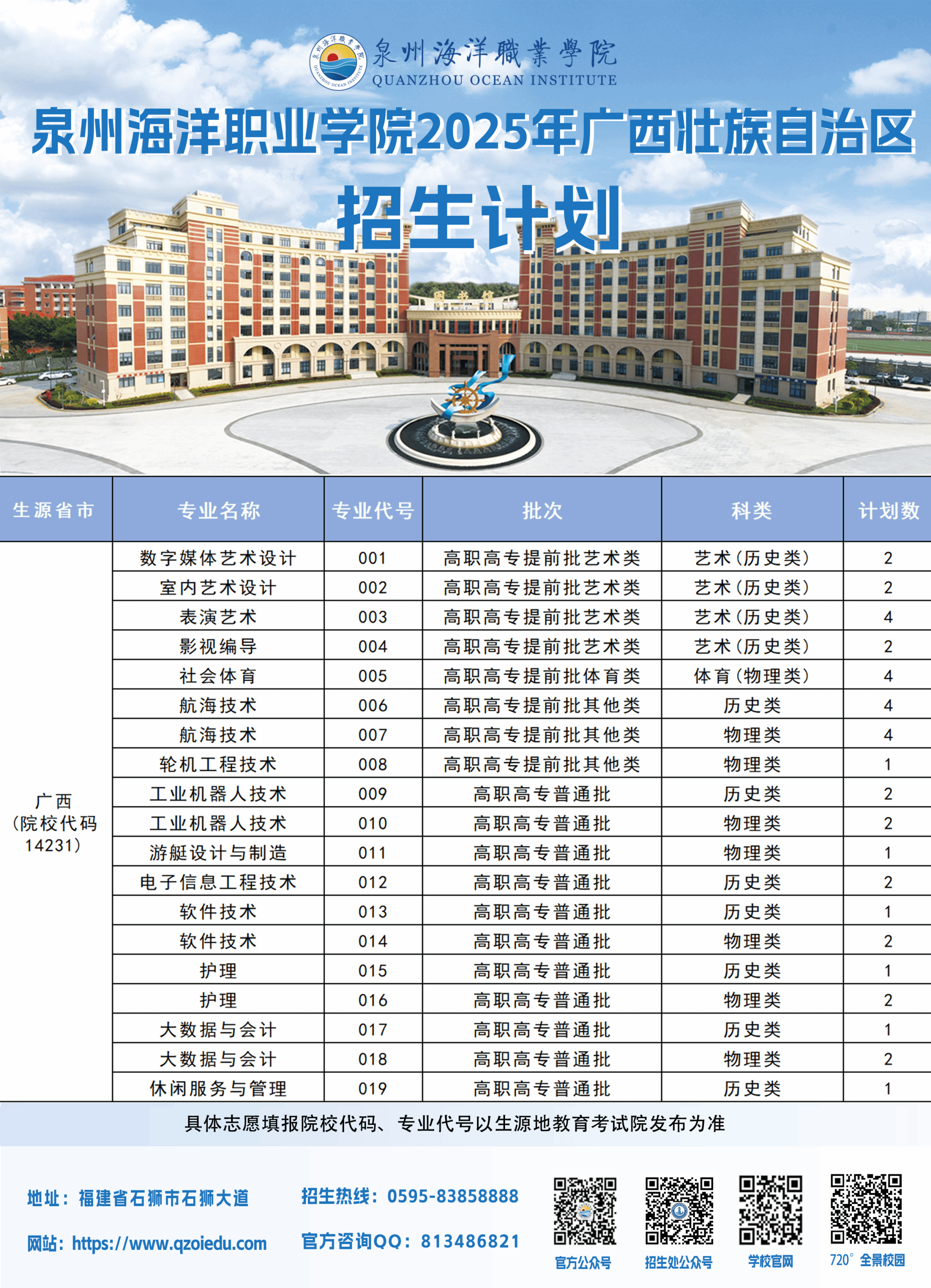 泉州海洋职业学院2025年普通高考招生计划
