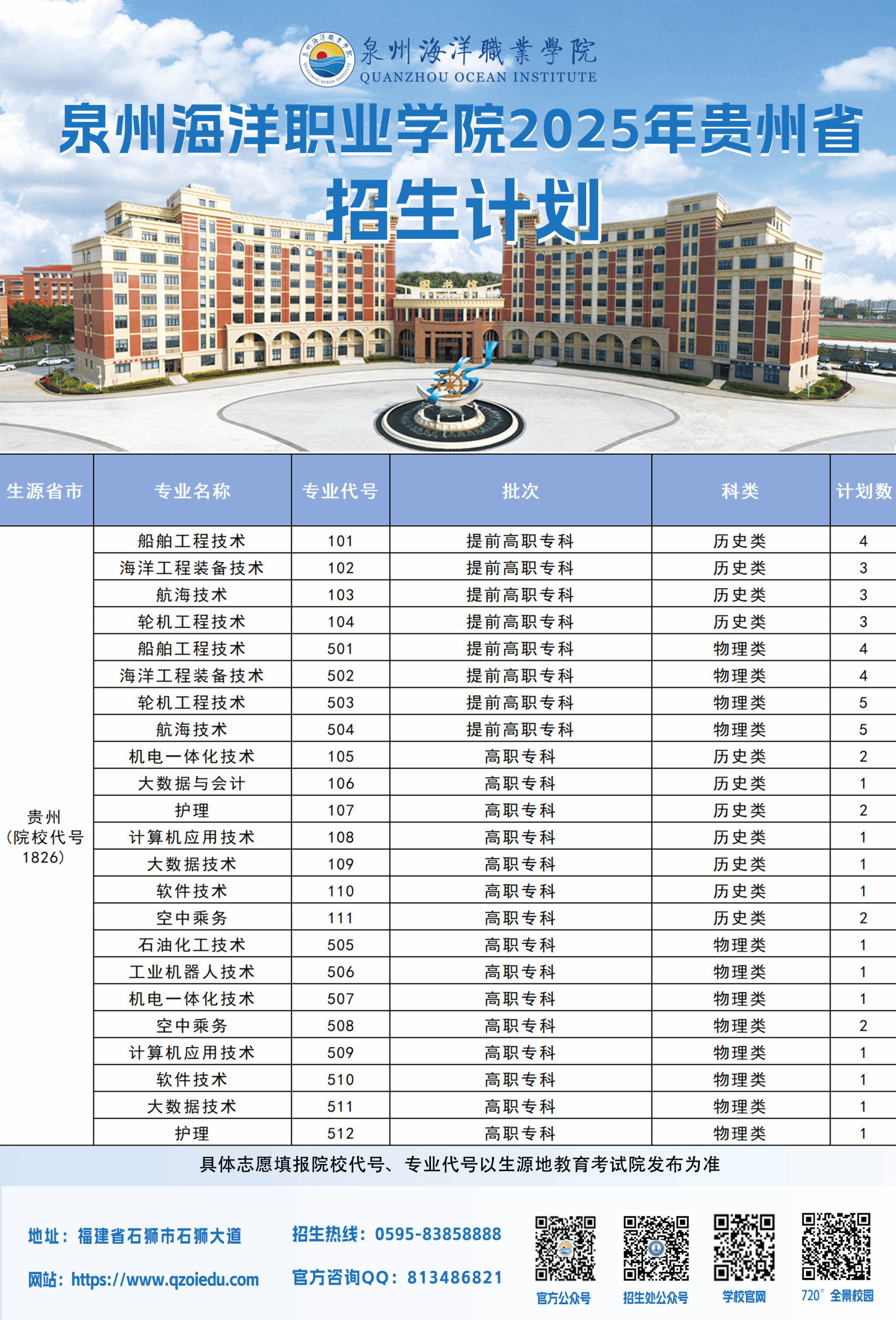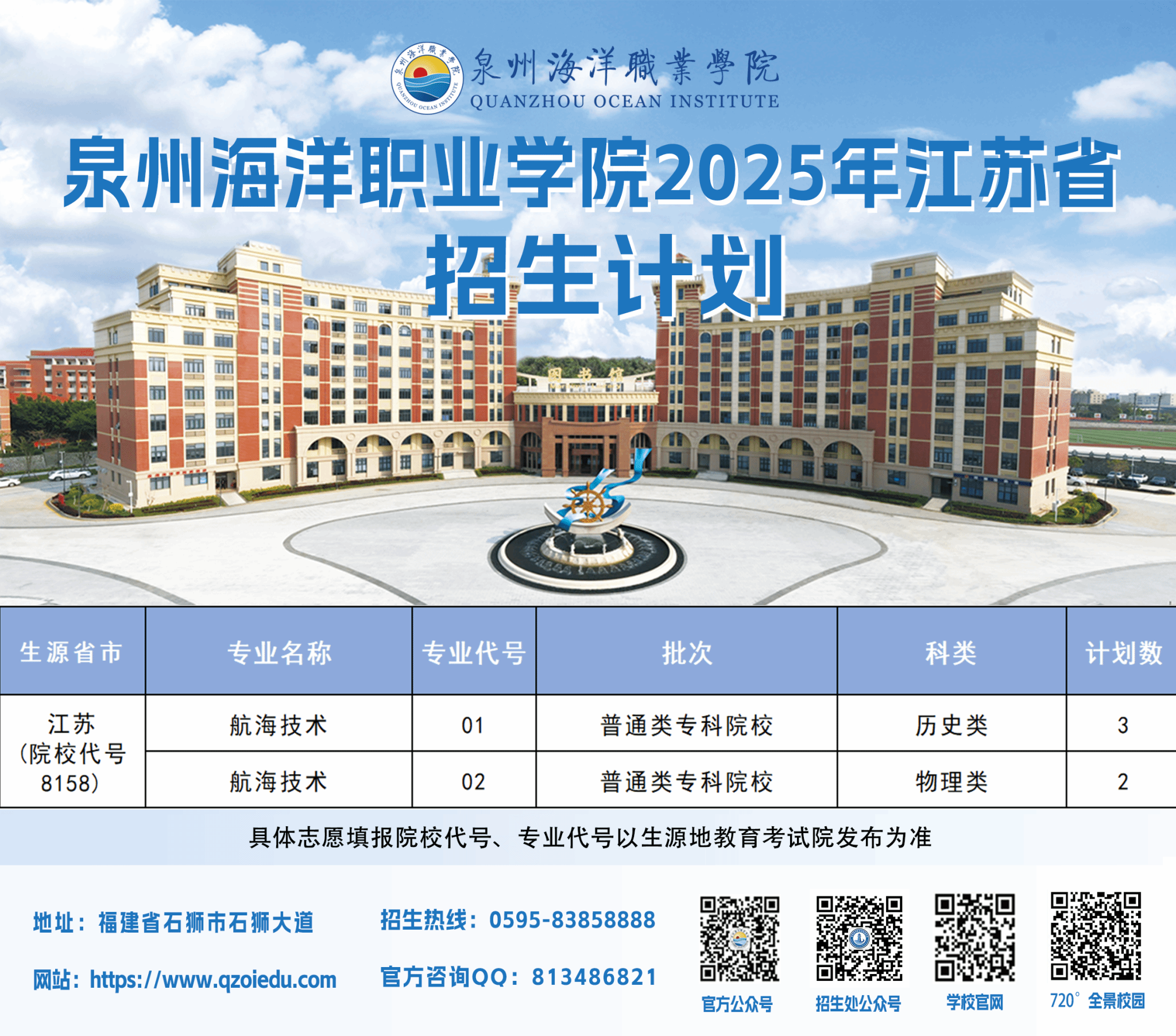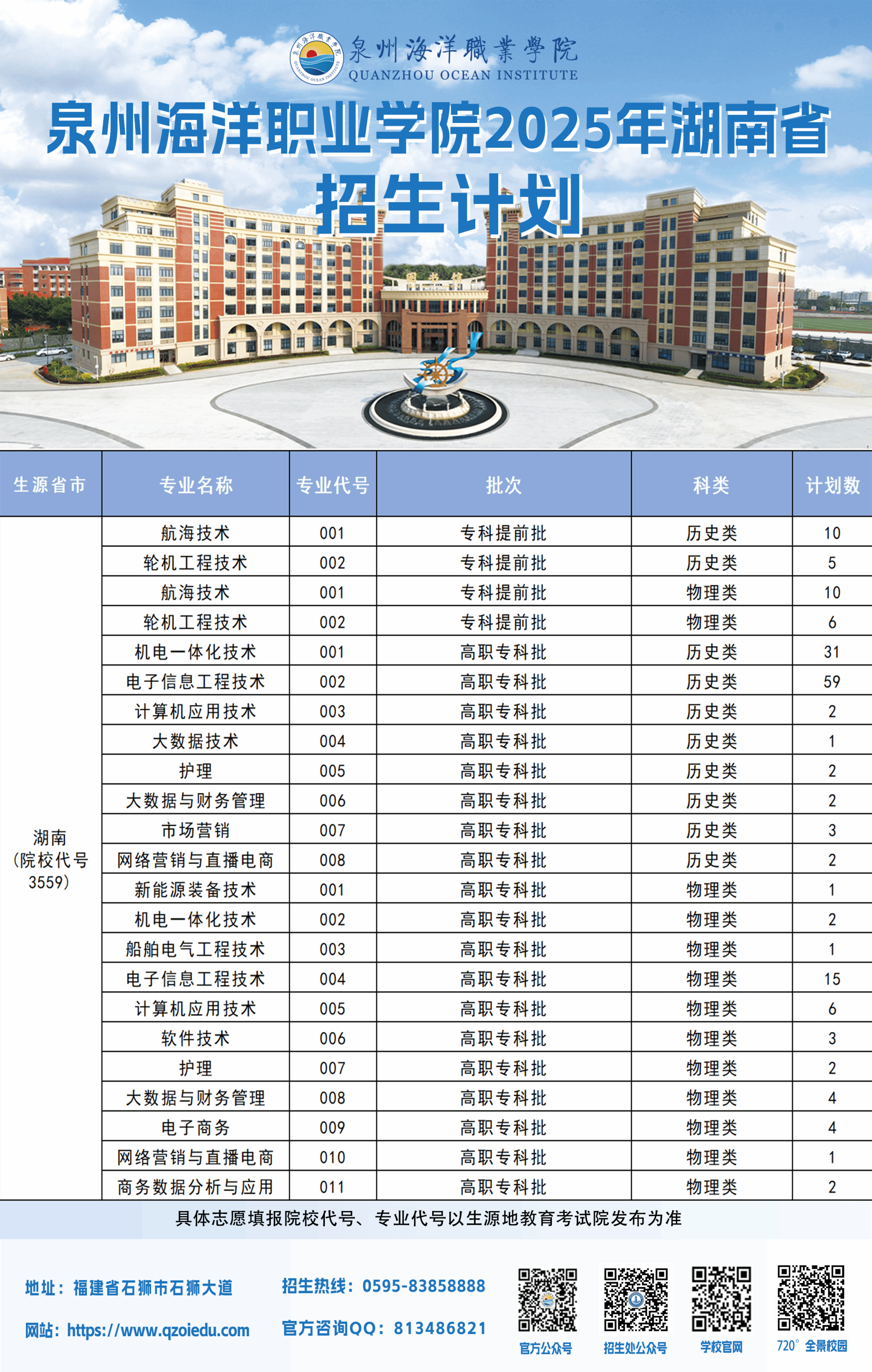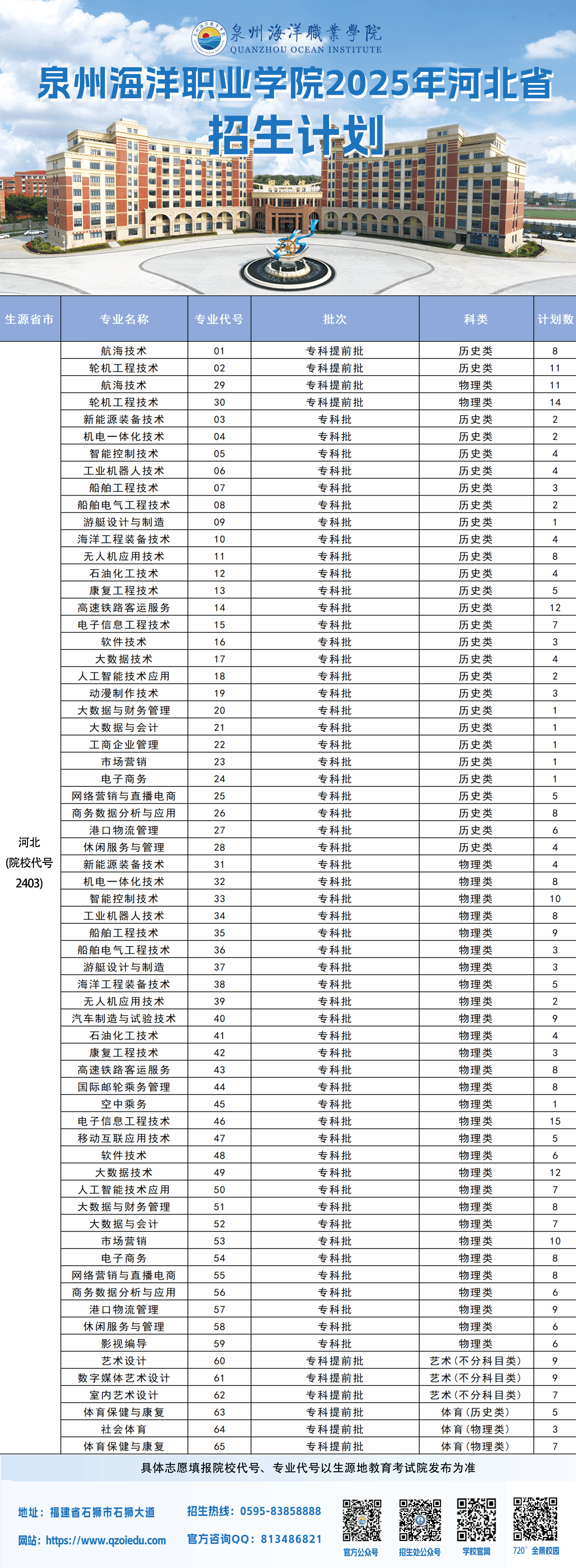 泉州海洋职业学院2025年普通高考招生计划
