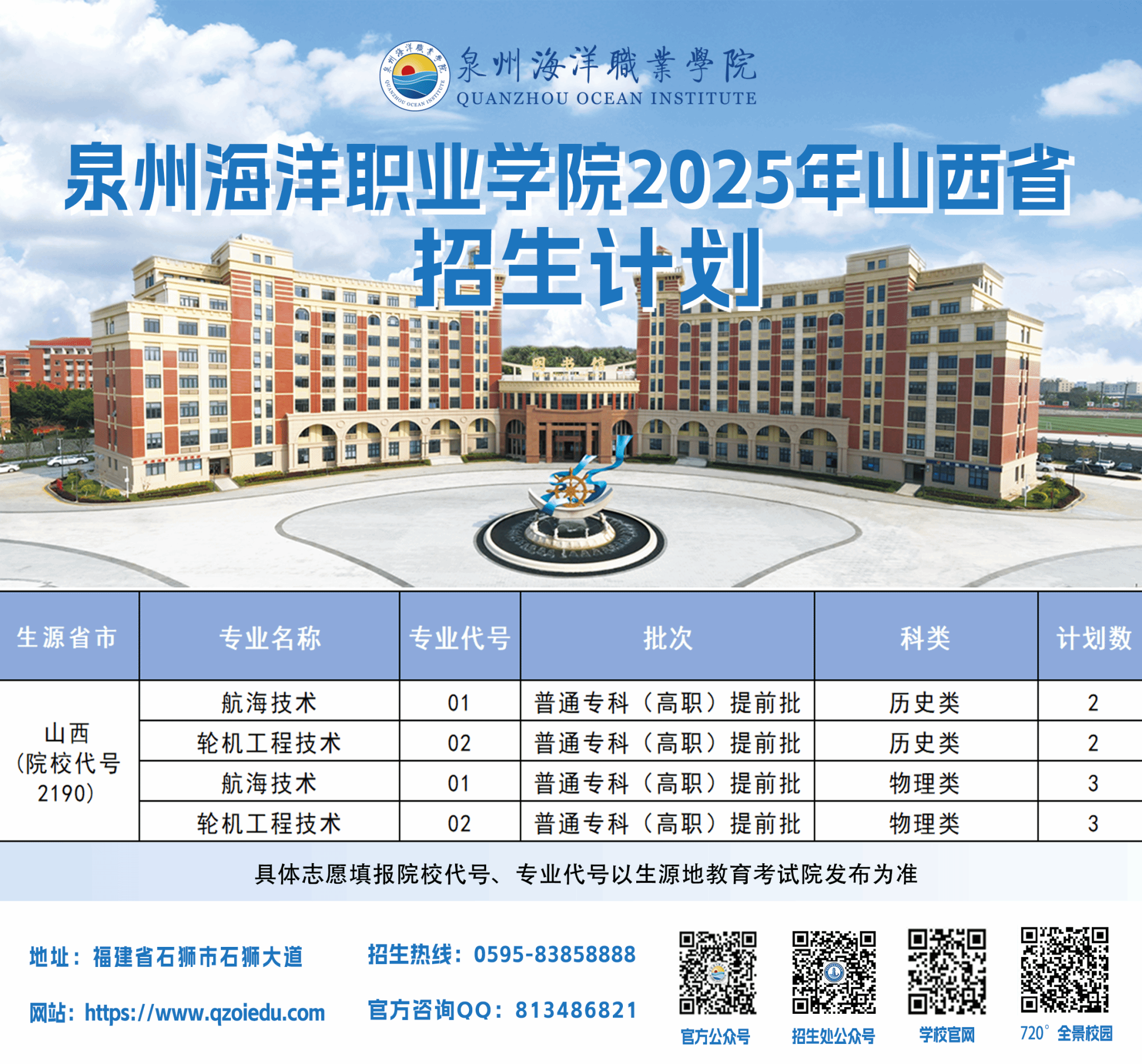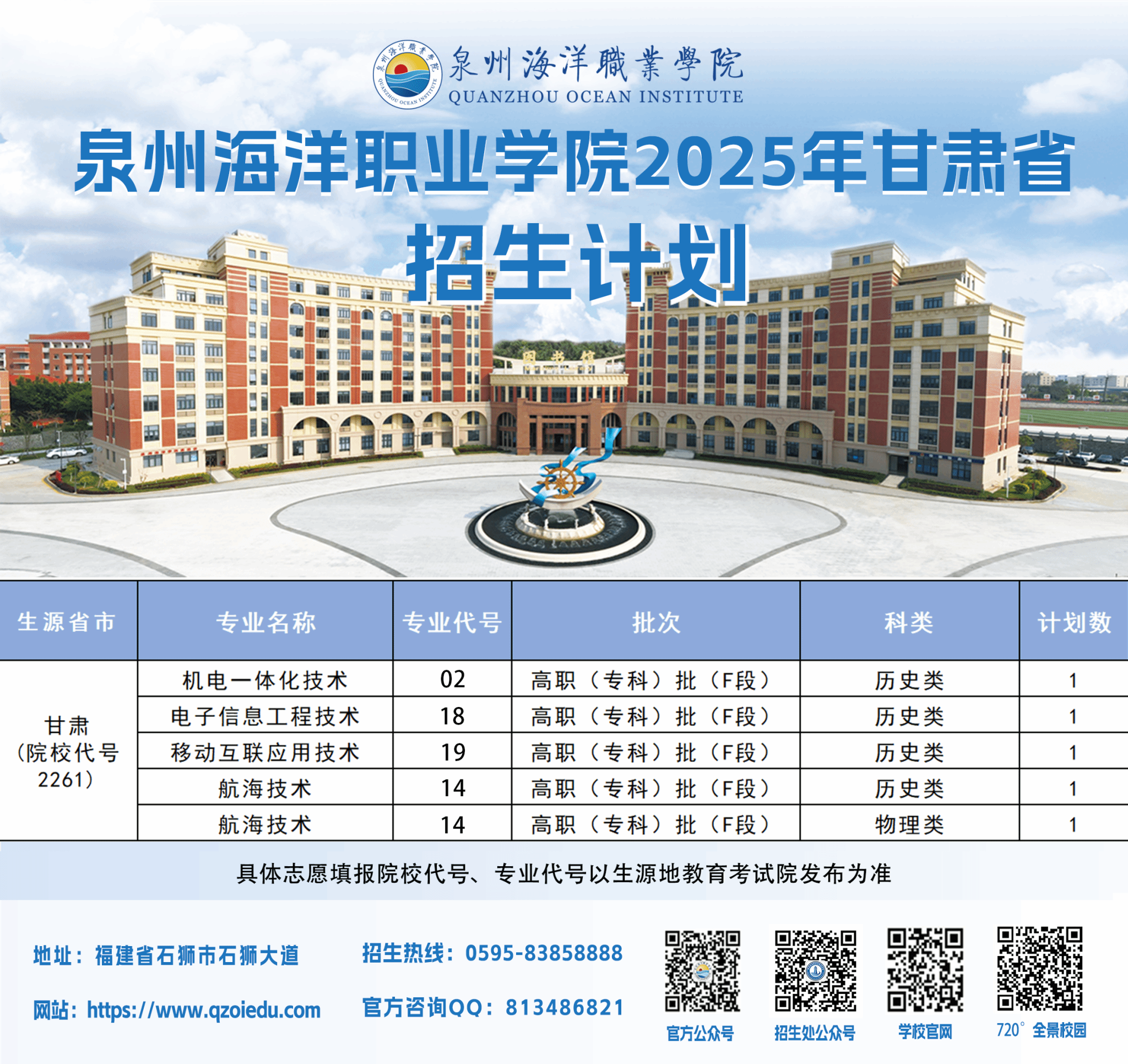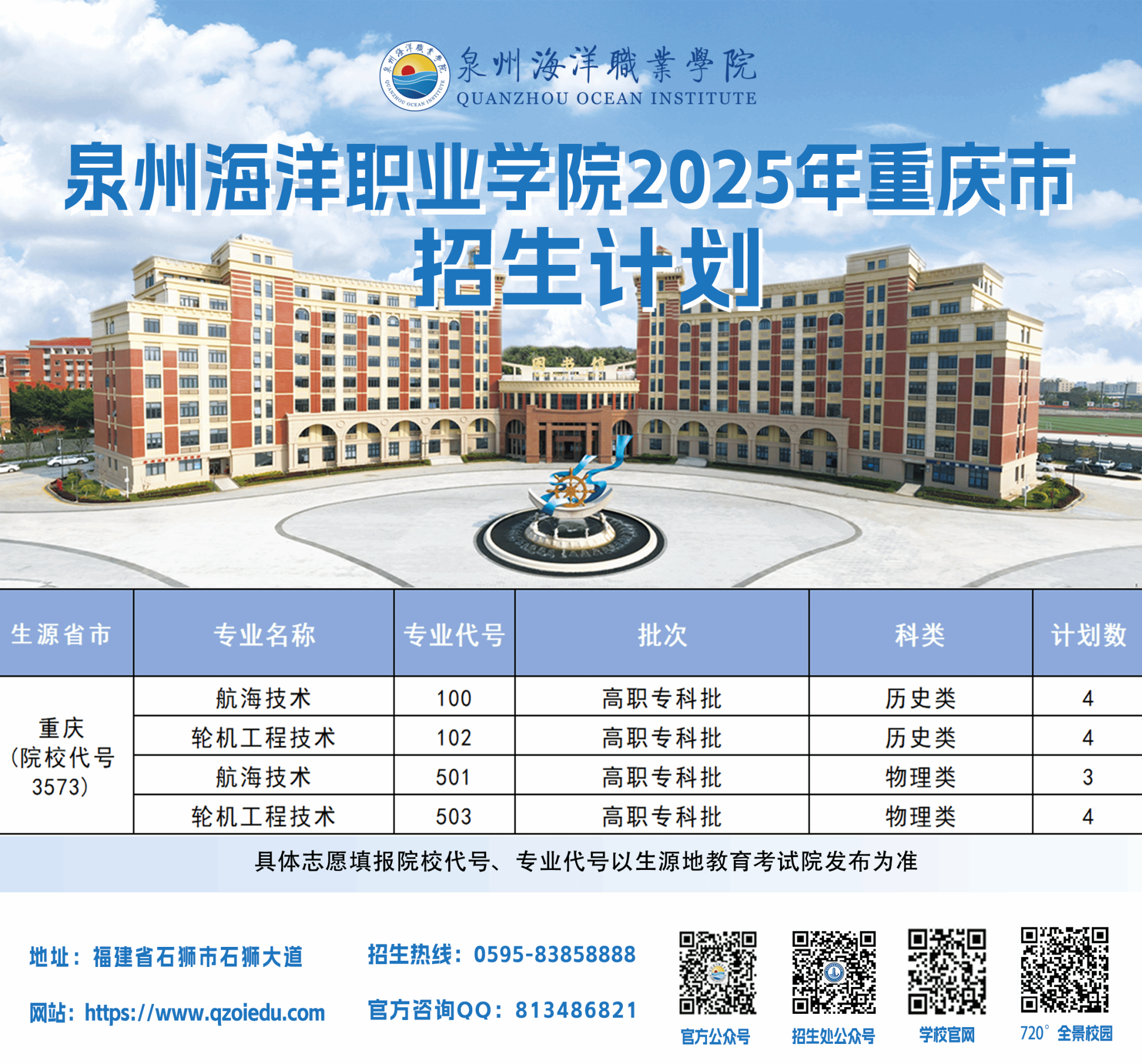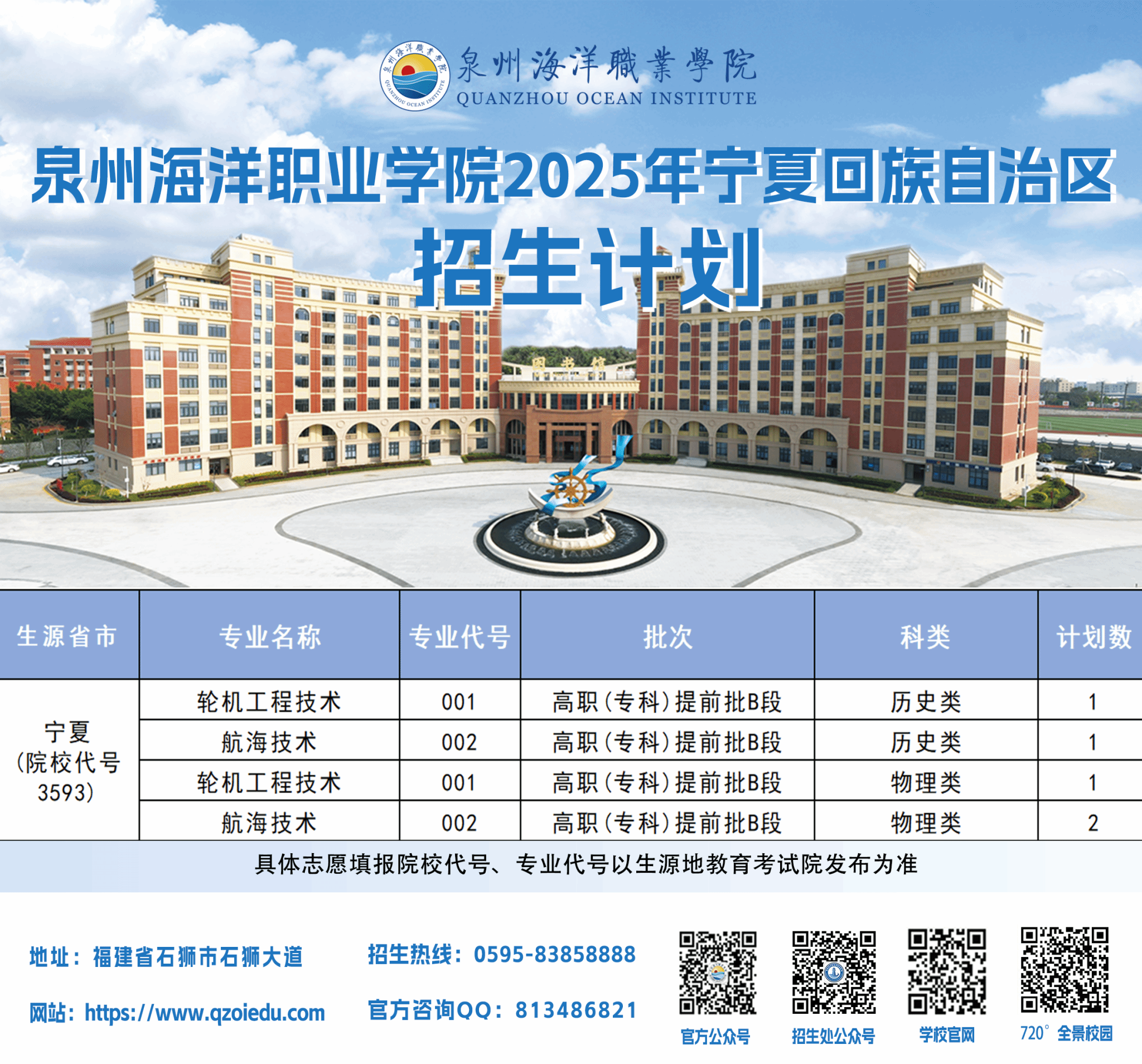 泉州海洋职业学院2025年普通高考招生计划