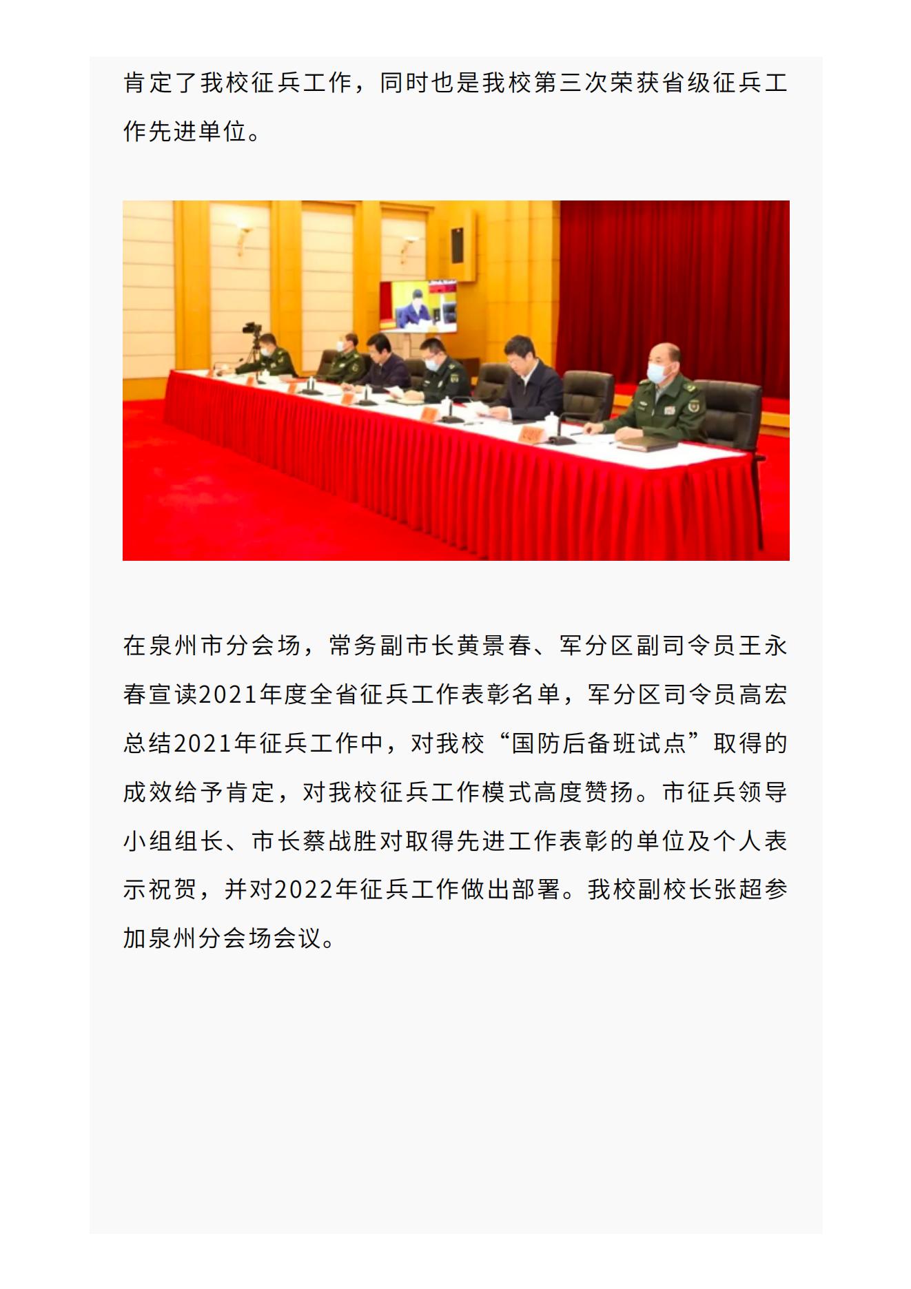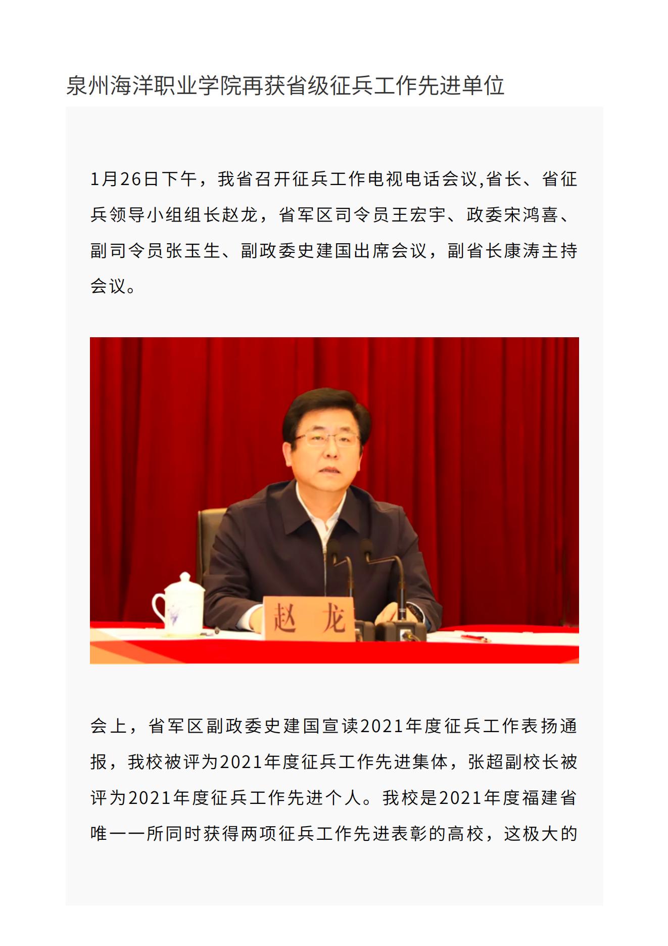 泉州海洋职业学院再获省级征兵工作先进单位
