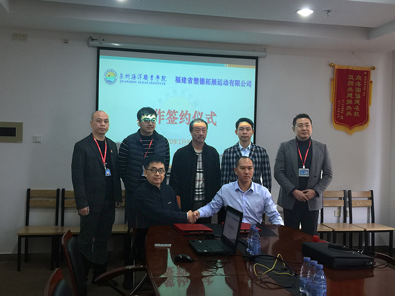 为进一步推进我校国防教育工作,2020年1月9日上午,我校与福建省塑德拓展运动有限公司在校行政楼三楼会议室举行合作签约仪式。我校蔡天真董事长、柏定国校长、张超副校长、陈永鑫副校长、国防教育基地李艺鹏书记和福建省塑德拓展运动有限公司总经理卢爱斌、胡明云等领导出席签约仪式。