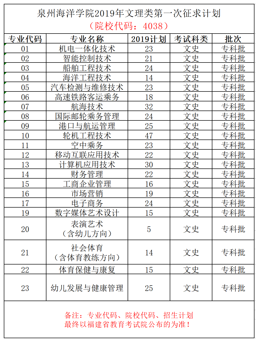 泉州海洋学院2019年在福建省文史、理工类专科批的录取已结束,各位考生可登陆网站: