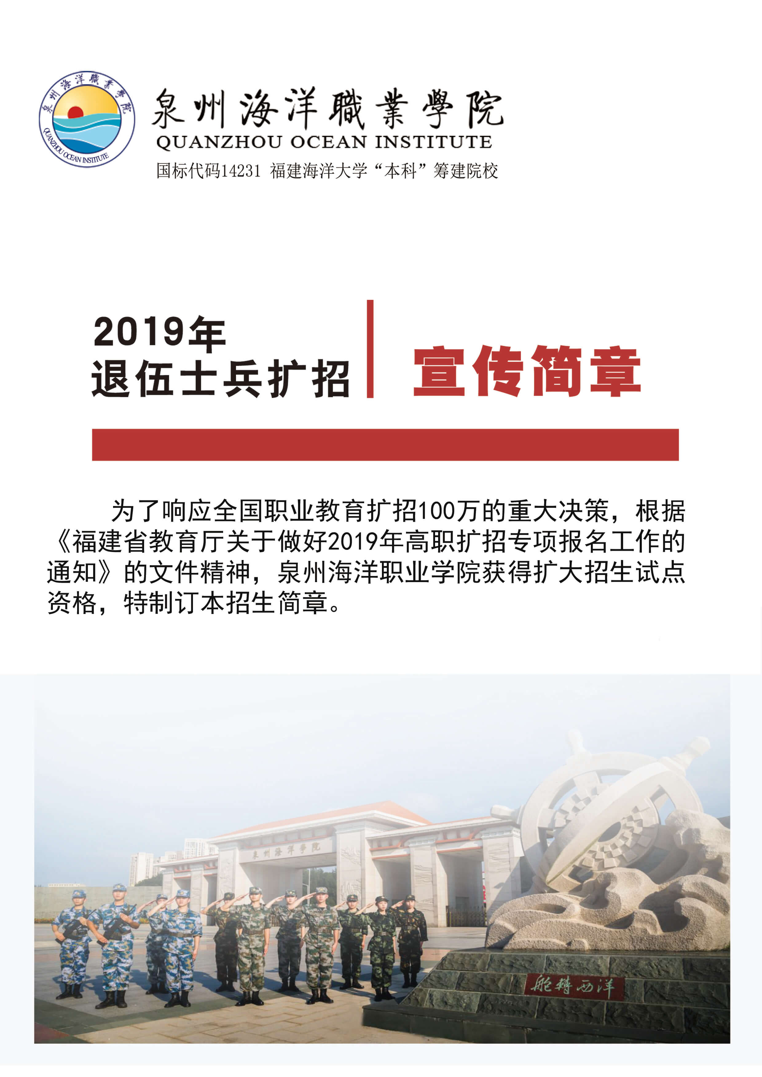 不忘军旅岁月,携梦继续前行——2019年退伍士兵扩招宣传简章