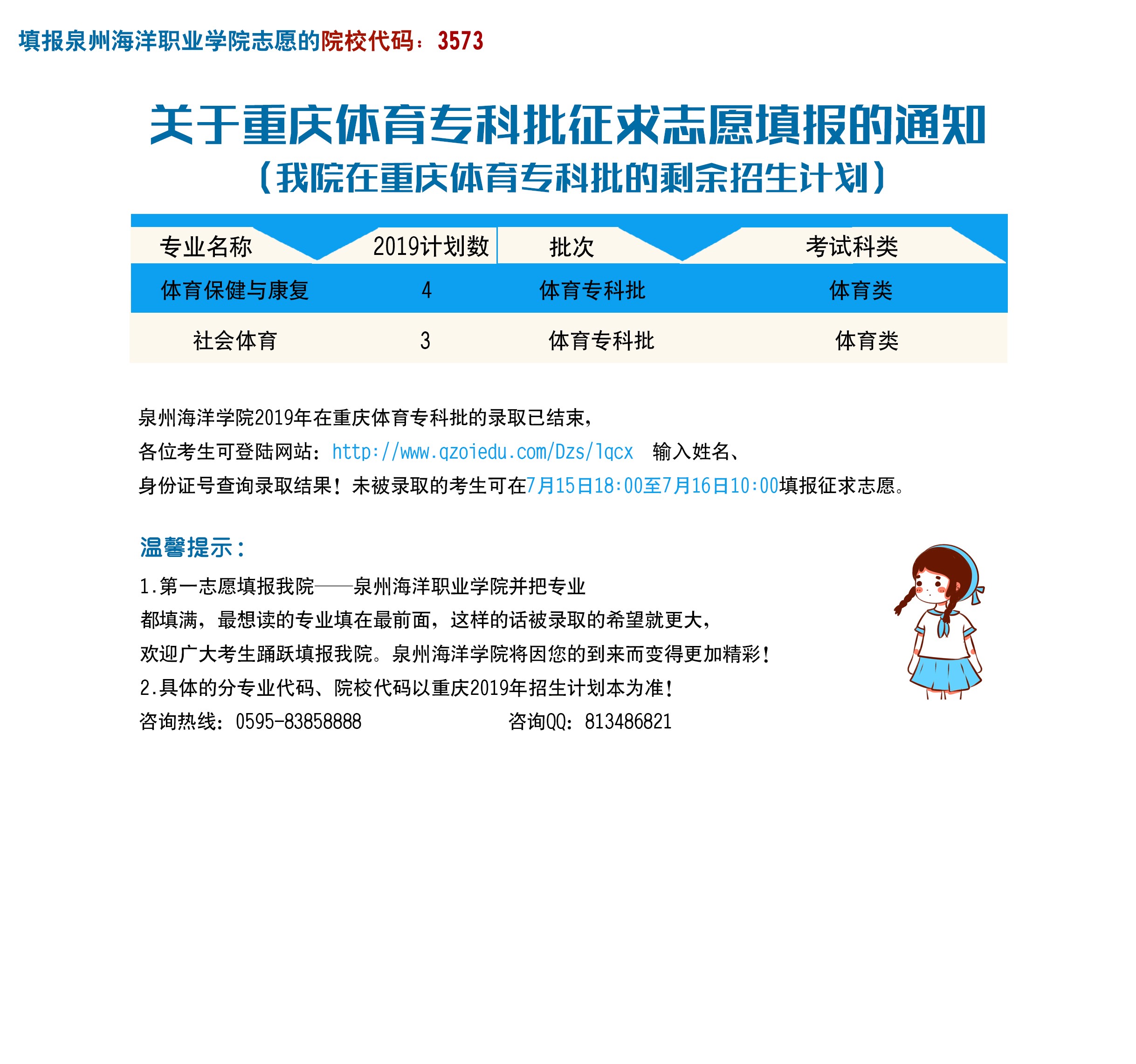 关于重庆体育专科批征求志愿填报的通知