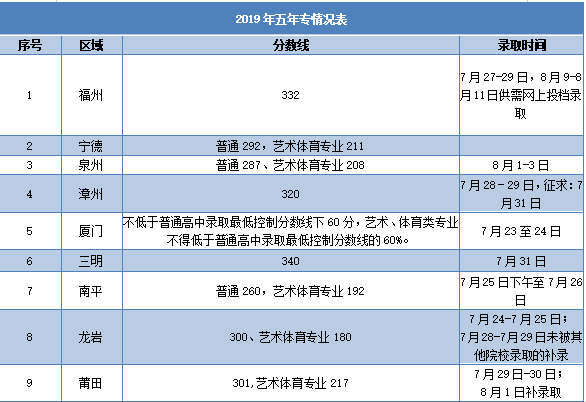 2019年泉州海洋学院五年专分专业招生计划及情况表