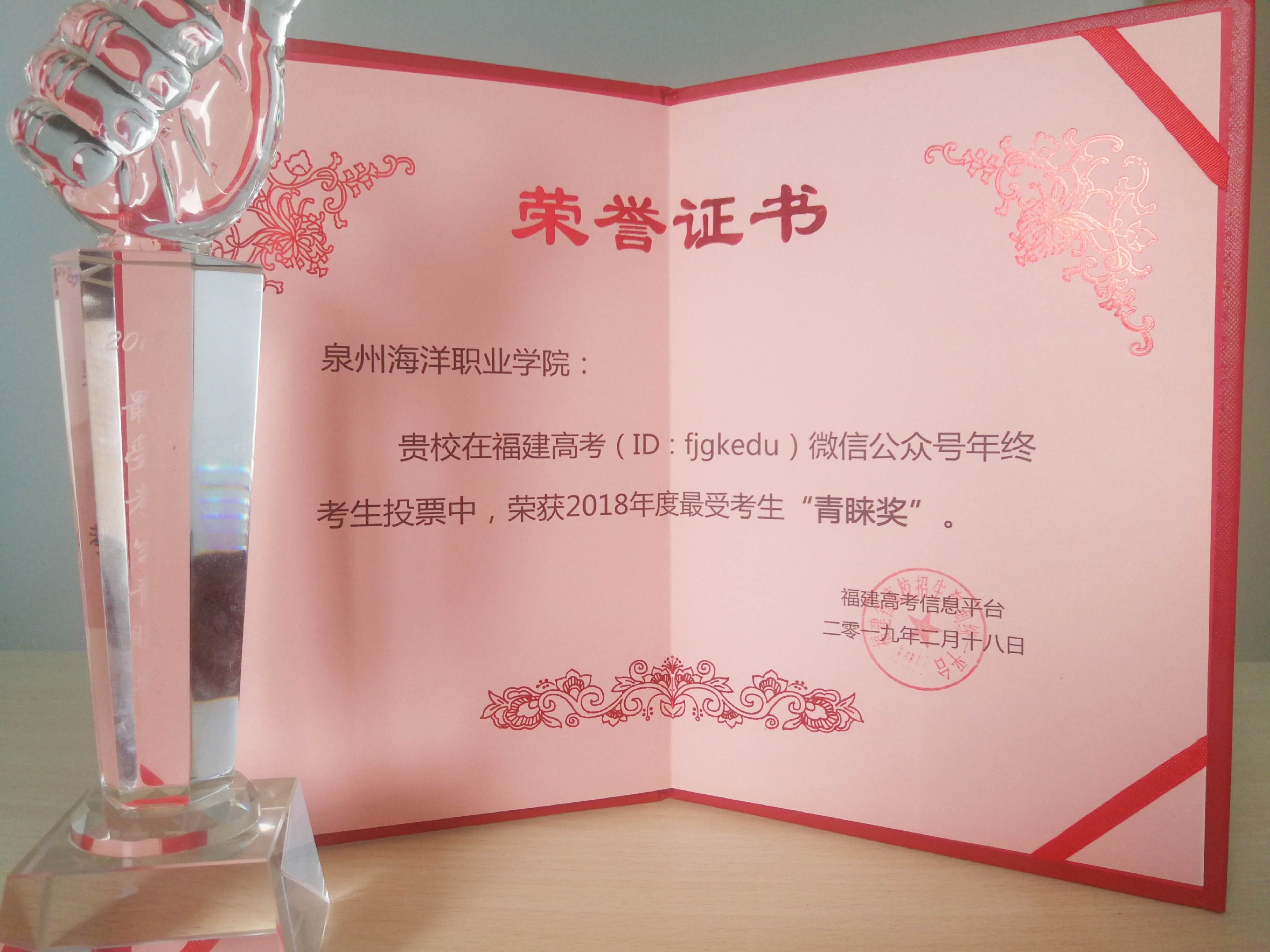 泉州海洋学院在福建高考年终考生投票中,荣获2018年度最受考生“青睐奖”