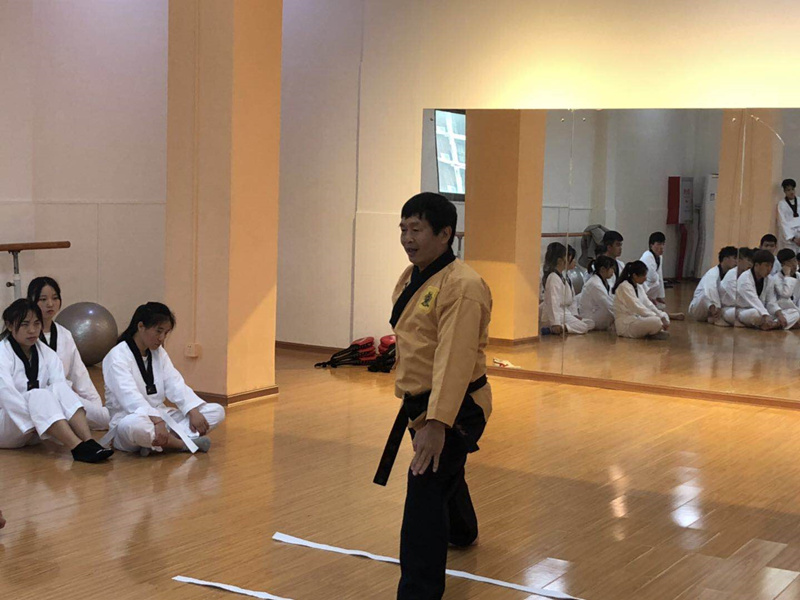 跆拳道是现代奥运会上正式比赛项目之一,是一种主要使用手及脚进行格斗或对抗的运动。在时下全民健身的时代,跆拳道成了时髦健康的竞技运动,跆拳道蕴含的知识和境界也正在被世界所熟知。课上洪明煌教练先为同学们进行了系统的知识讲解,介绍跆拳道的教学模式、教学理念及教学优势等。讲解后,他还为同学们示范了实战过程中的动作,角度的精准、力度的大小都是在实战中累积的经验,演练后洪明煌教练告知同学们,在练好格斗动作前,基本功要练扎实,要兼听、看、练三者。