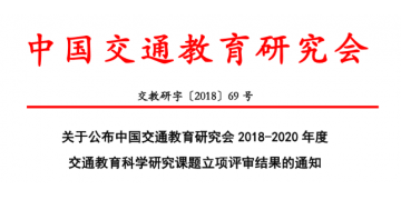根据中国交通教育研究会通知精神,本次课题评审,各分会、各研究中心、各会员单位积极组织申报工作,共计申报交通教育科学研究课题 552 项。在分会初评、学术部审查、总会立项评审会终评、中国交通教育研究会官方网站公示评审结果等基础上,共确定441 个课题获得立项,其中重点立项课题73 项,一般立项课题 368项。